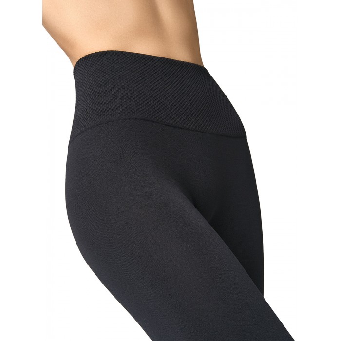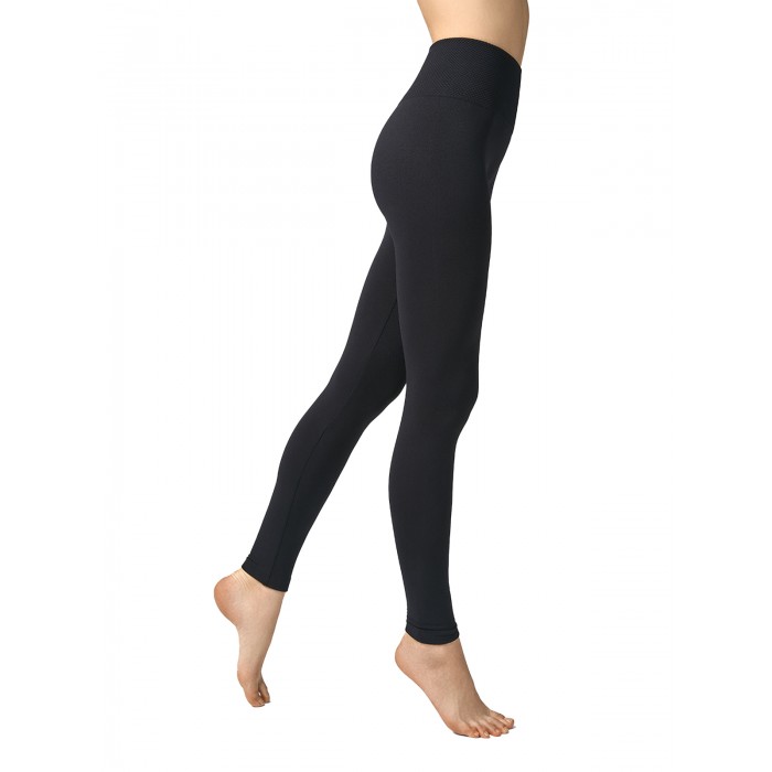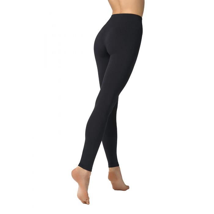Леггинсы имеют классическую посадку на талии и полную длину, достигающую до щиколотки. Они однородные по всей длине и обладают комфортным очень широким поясом шириной 12,0 см, который обеспечивает идеальную посадку и не скатывается. Бесшовный дизайн в части торса без центрального соединительного шва добавляет комфорта и элегантности.