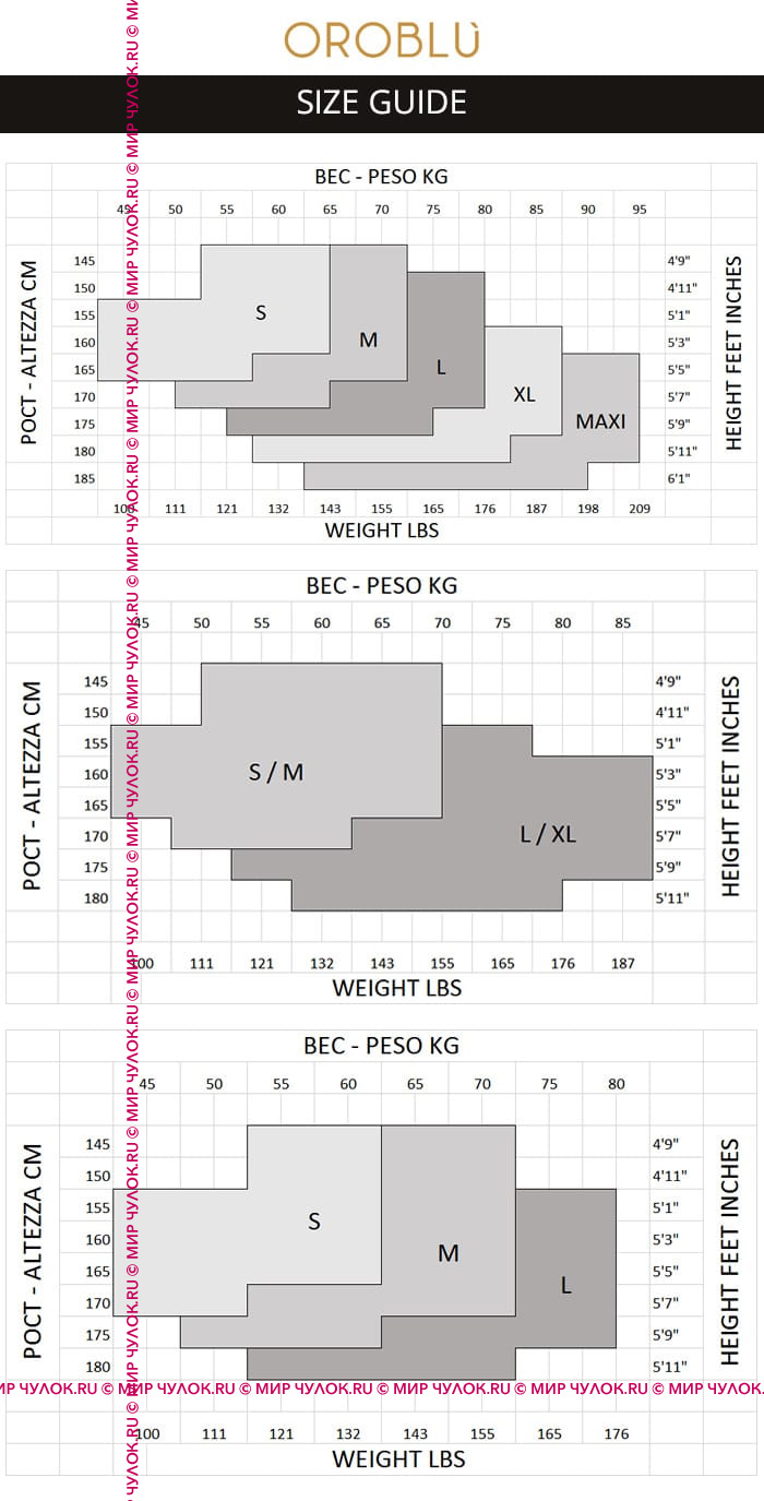 Таблицы размеров OROBLU